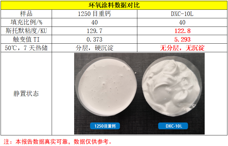 我司針對該問題開發的低吸油活性鈣,具有更好的油相相容性、分散性、研磨性、抗沉降性,且具有極強的觸變性,高攪狀態下具有較低的體系粘度,減少加工能耗,提高生產效率;靜置或低攪狀態下具有較高的體系粘度,大大提高產品貯存穩定性。