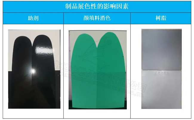 著色顏料在制品的展色性一般會受到如樹脂、助劑、白色顏填料消色力等因素影響。這些因素作為基準料一般在調色的時候易受到忽視,但這些因素疊加之后通常會造成色粉或者色漿的添加過量,間接提高調色和制品成本。