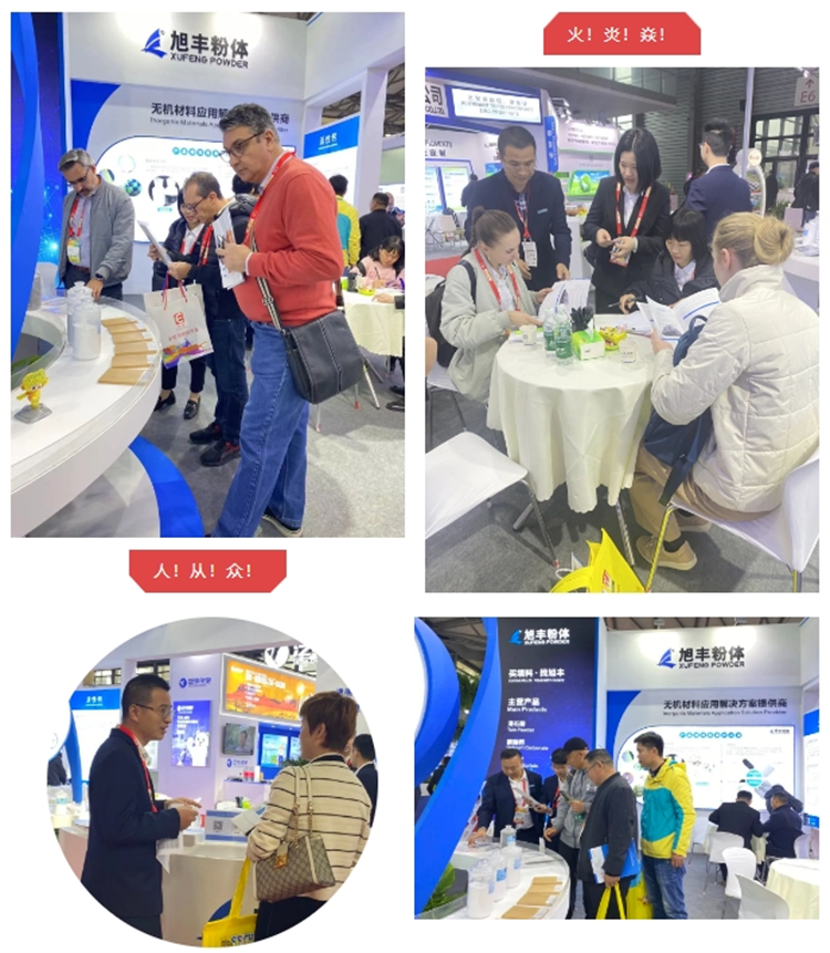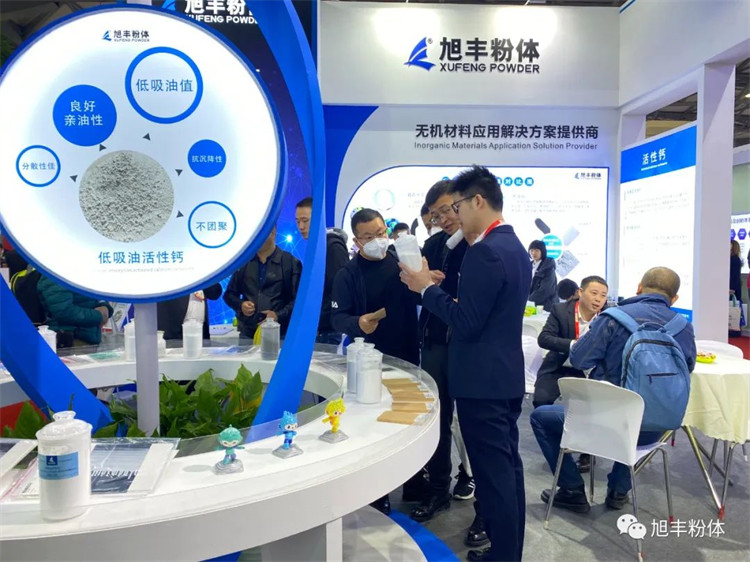 旭豐粉體本次展會依然充滿“新”意,以穩(wěn)重藍為主色調,展位造型簡約不失大氣,設有直觀的產品展示區(qū),并以專業(yè)的知識和服務,吸引了行業(yè)大咖駐足參觀和互動交流!