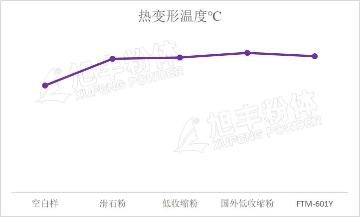 從上圖可以看出,FTM-601Y較添加滑石粉體系,具有較高的熱變形溫度,同時相對純PP樹脂來說,熱變形溫度也有大幅度的提升,這說明FTM-601Y在PP中具有良好的耐熱穩定性。