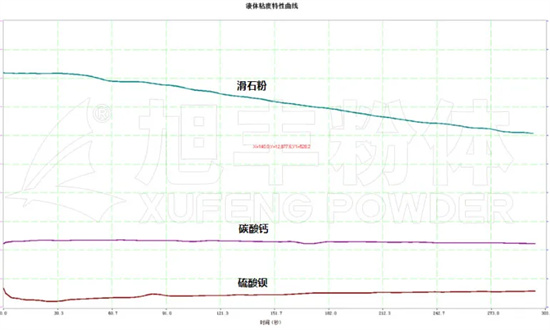 測試結果表明:相同目數下粘度對比,滑石粉>碳酸鈣>硫酸鋇。