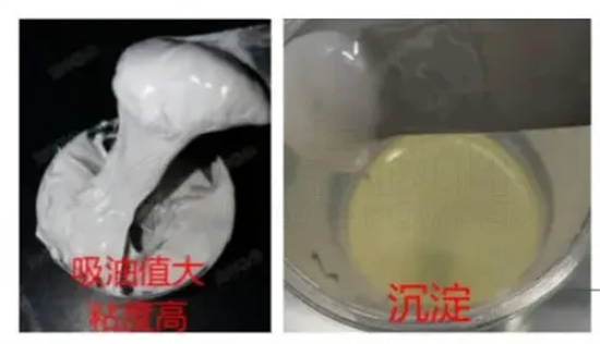 我司針對膠粘劑問題開發的低吸油活性鈣,具有更好的油相相容性、研磨性、分散性、抗沉降性,且具有極強的觸變性,高攪狀態下具有較低的體系粘度,減少加工能耗,提高生產效率;靜置或低攪狀態下具有較高的體系粘度,大大提高產品貯存穩定性。
