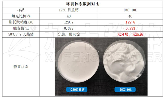 表1:低吸油活性鈣在環氧膠粘劑中的效果