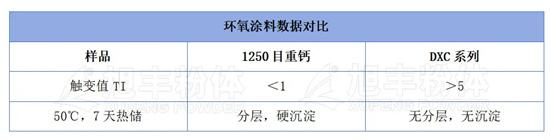 由于(攪拌或搖動)其粘度即降低的流動性質(zhì),稱為觸變性。可以通過粉體表面改性提高涂料體系的觸變值。由于有觸變特性,當(dāng)涂刷較厚時不會出現(xiàn)流掛現(xiàn)象,同時有儲存穩(wěn)定性好等優(yōu)點。(以下為改性前后的數(shù)據(jù)對比,圖一為1250目重鈣,圖二為DXC系列改性粉體)