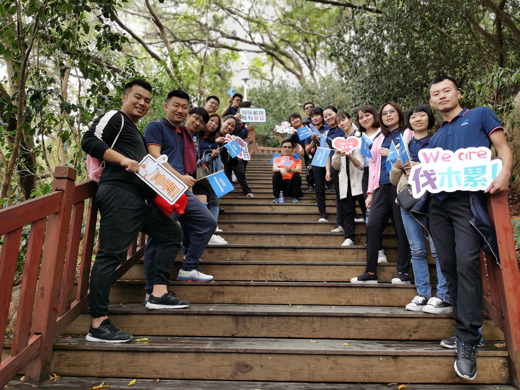 早上9點,所有小伙伴在山腳下集合,帶著對這尊英雄雕塑油然而生的敬仰,我們迎著朝陽出發了。踩著石梯在茂密的叢林中穿山而上,一路走走停停,談笑風生,顧不得腰酸腿軟,汗流滿面,興致勃勃爬到了山頂。