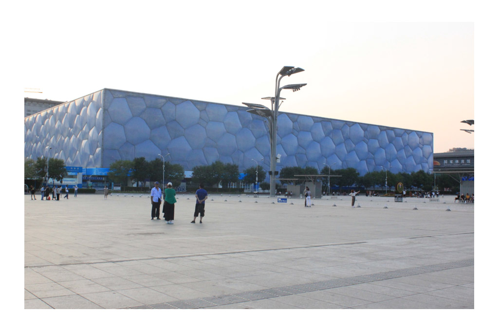 爬完長城,感受了歷史勞動人民的智慧后,我們又來到奧林匹克花園,充分見證了現代建筑的力量。橢圓形的鳥巢邊緣平滑,放形的水立方菱角分明,雄壯溫馨的鳥巢,優雅夢幻的水立方,緊密呼應,對比強烈,走近他們,仿佛還能感受到空氣中彌漫的奧運選手們揮灑的汗水的味道和觀眾們熱情的歡呼。